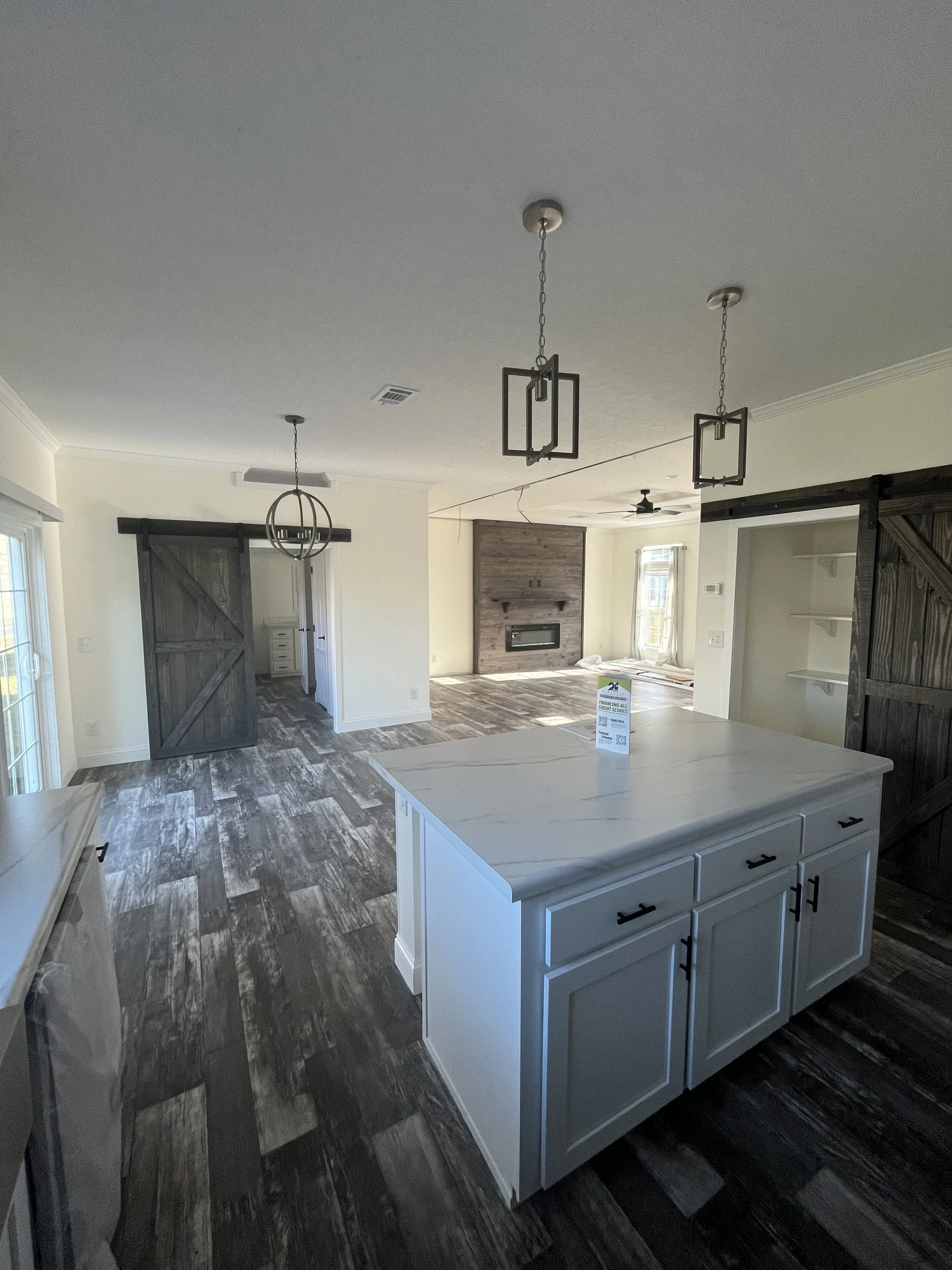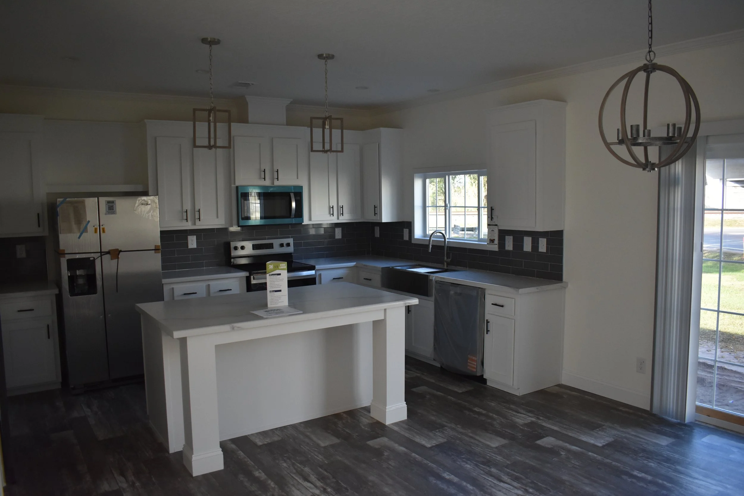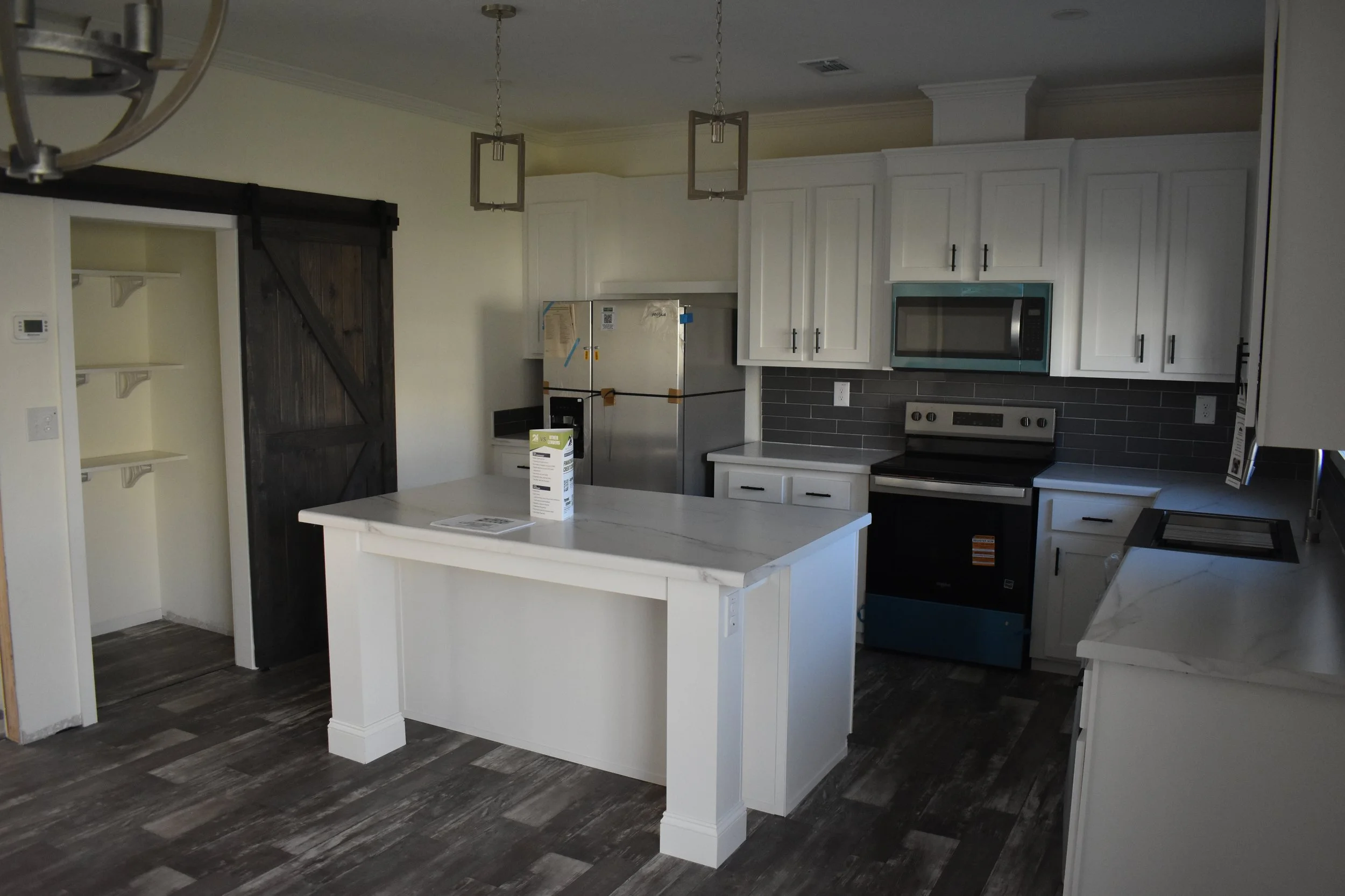 Meet The Bradford — a smartly designed 3 bedroom, 2 bathroom home with 1,720 square feet of comfort and style. Its open kitchen is the star of the layout, featuring a roomy island, generous cabinetry, and a sliding glass door that adds light and easy outdoor access.