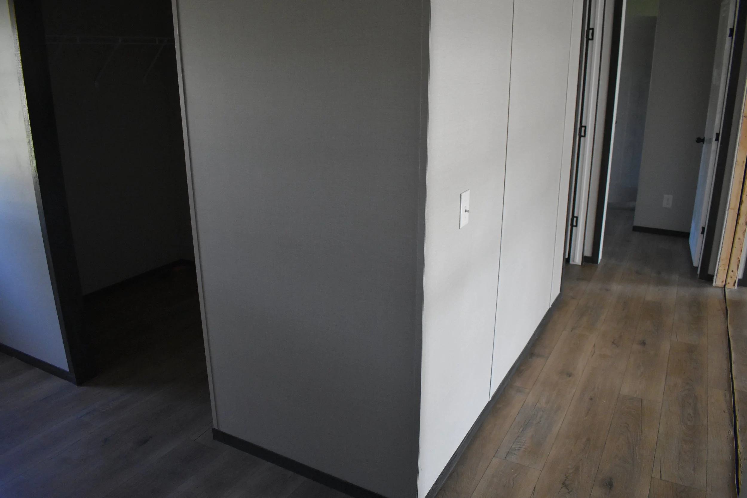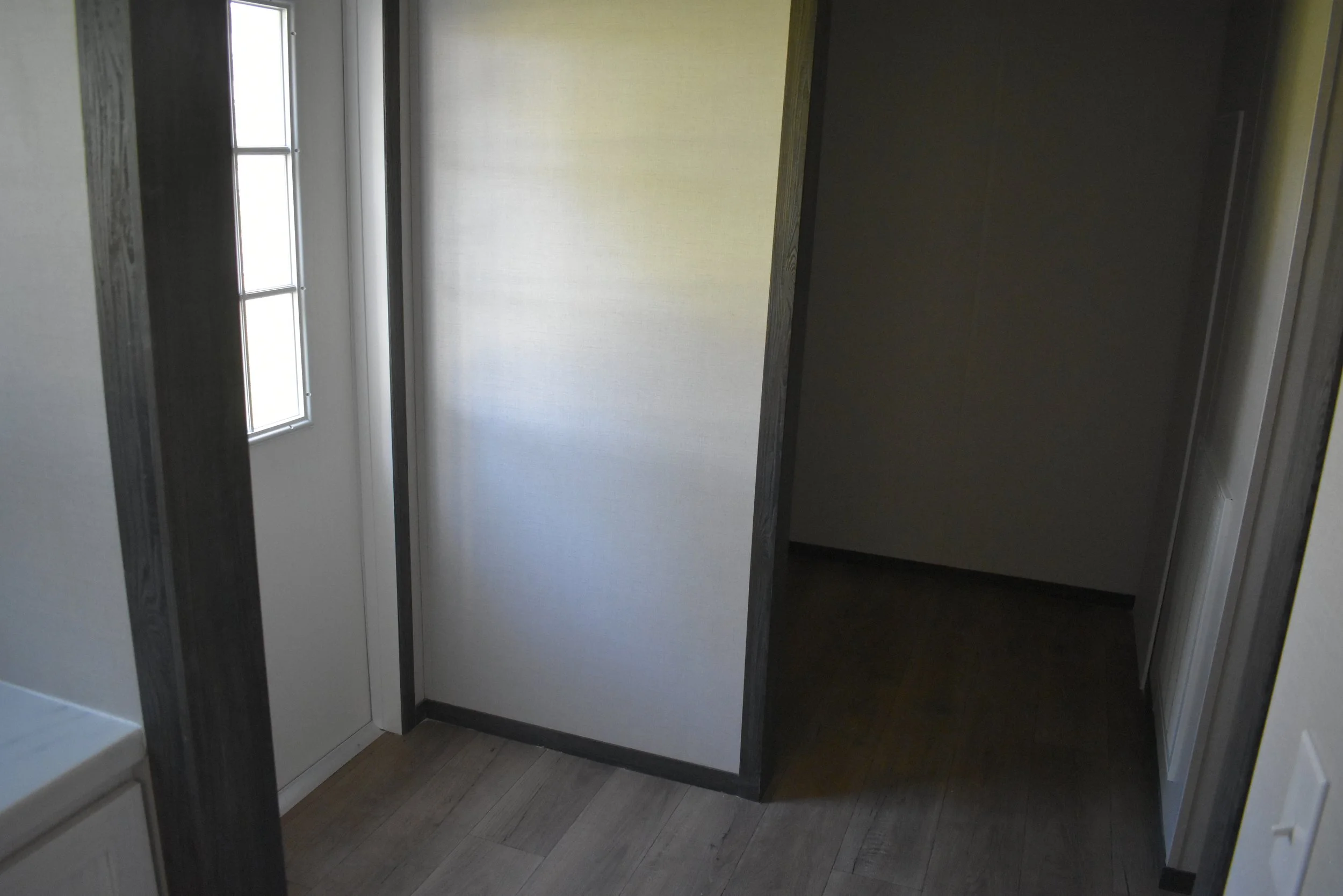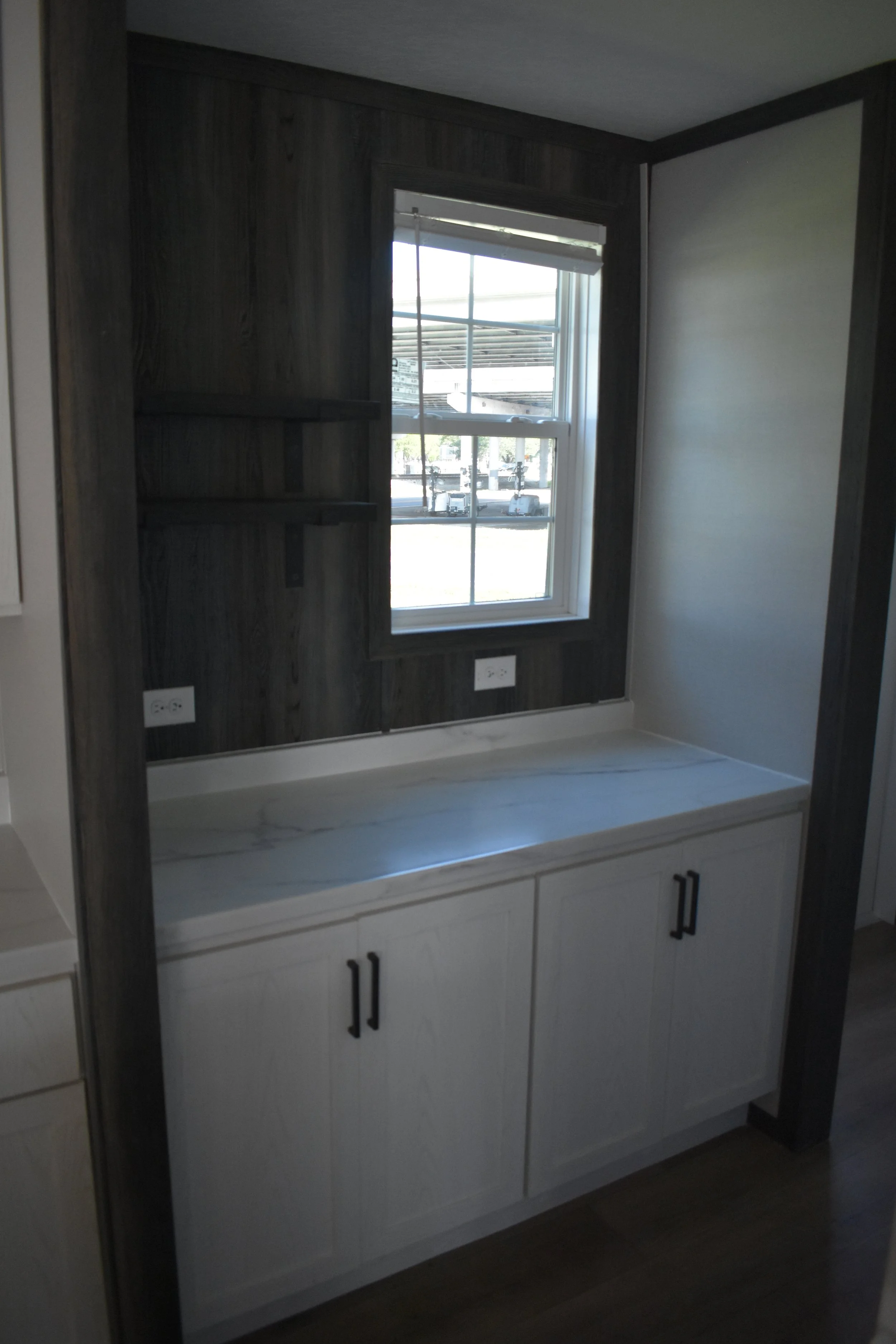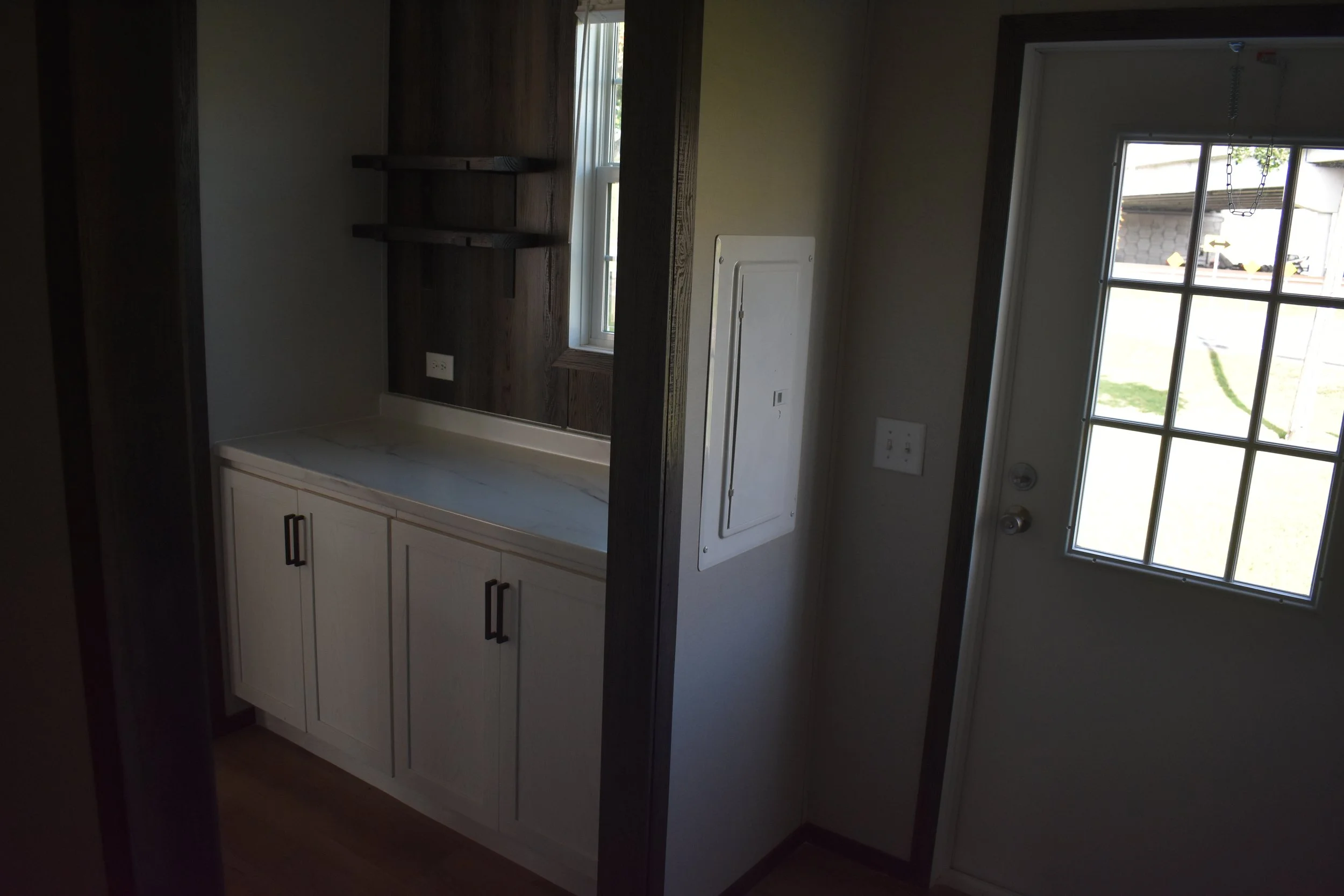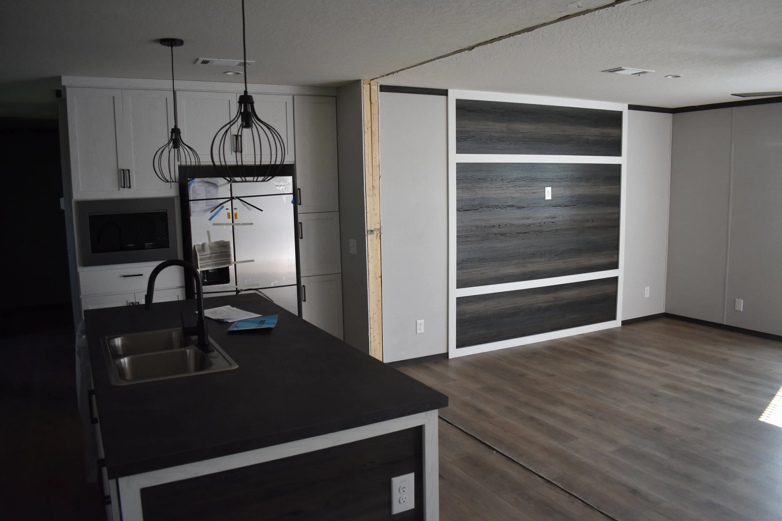 At the center of the home, the large kitchen island—with a built-in sink—anchors the space and offers plenty of room for cooking, gathering, or casual dining. Just off the kitchen, a dedicated beverage or coffee bar adds a touch of luxury and daily convenience, while the hallway nook is perfectly sized for a second fridge or freezer to keep extra groceries within reach.