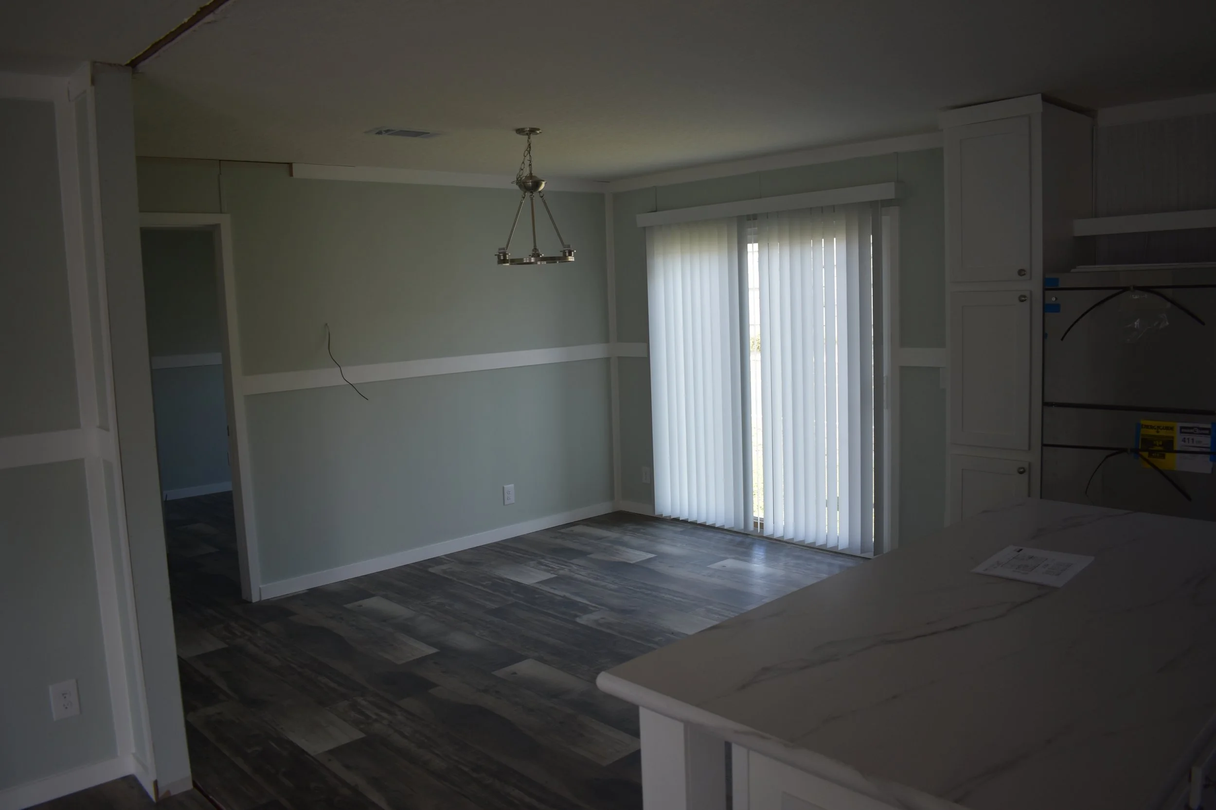 At the heart of the home, the kitchen features a central island perfect for casual dining, meal prep, or pulling up a few bar stools for morning coffee. Sliding glass doors off the dining area invite natural light and offer the perfect spot to add a future back porch or outdoor living space.